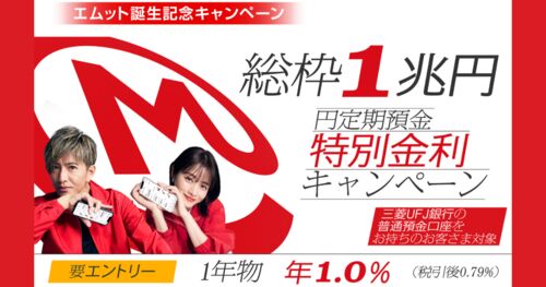 この記事は、5分で読めます。 こんばんは。管理人のuncleゆーさん(@UncleYusan)です。 超低金利時代が終わりを告げ、預金金利にも明るい兆しが見え始めています。 そんな中、メガバンクである三菱UFJ銀行が、魅力的な「エムット誕生記念 円定期特別金利キ…